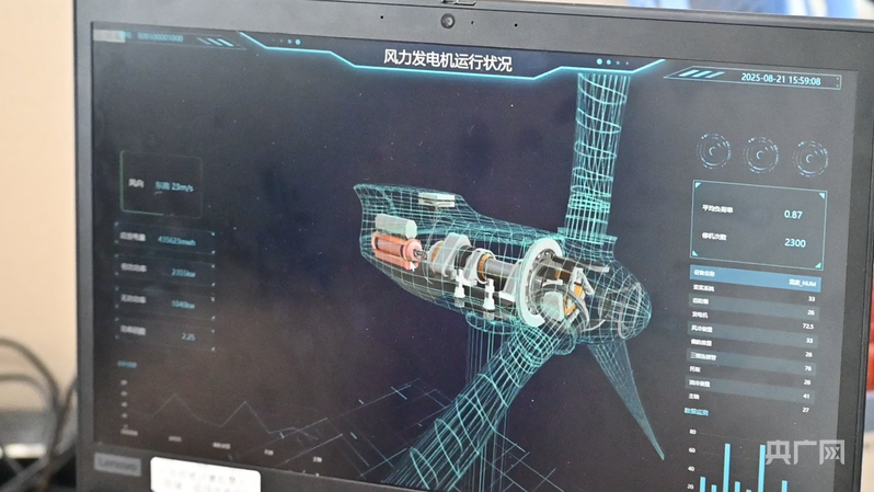 在美林數(shù)據(jù)西安總部辦公區(qū),電腦進入業(yè)務(wù)數(shù)據(jù)系統(tǒng)后,遠在千里之外的大型風力發(fā)電機運行的實時動態(tài),一目了然。