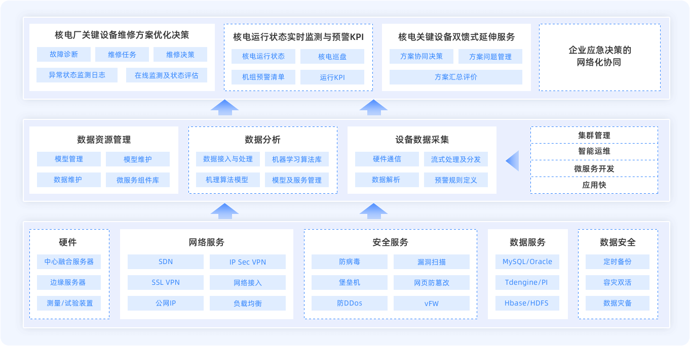 構(gòu)建面向機(jī)組實(shí)時(shí)運(yùn)行監(jiān)控預(yù)警、設(shè)備雙饋式服務(wù)、維修應(yīng)急決策全面協(xié)同的一體化核電運(yùn)維決策系統(tǒng)。通過設(shè)計(jì)、制造、運(yùn)營(yíng)、服務(wù)等多源異構(gòu)數(shù)據(jù)的全面存儲(chǔ)和管理,如電廠PI系統(tǒng)、IETM系統(tǒng)、便攜式終端、循泵試驗(yàn)臺(tái)等集成,借助數(shù)據(jù)深度建模,實(shí)現(xiàn)對(duì)運(yùn)行狀態(tài)的評(píng)估以及運(yùn)維活動(dòng)的實(shí)時(shí)決策優(yōu)化,實(shí)現(xiàn)設(shè)備故障從“被動(dòng)反應(yīng)”到“主動(dòng)預(yù)防”的模式轉(zhuǎn)變,提升企業(yè)生產(chǎn)運(yùn)營(yíng)的可靠性和安全性,助力提質(zhì)增效。